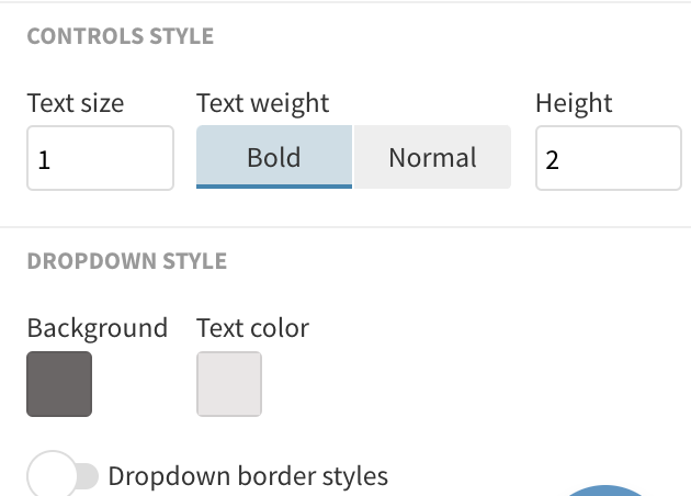 - The controls settings allow you to switch between different control types; a button, a dropdown and a slider. By enabling the advanced options, you can add a title, adjust the width and sort the controls.