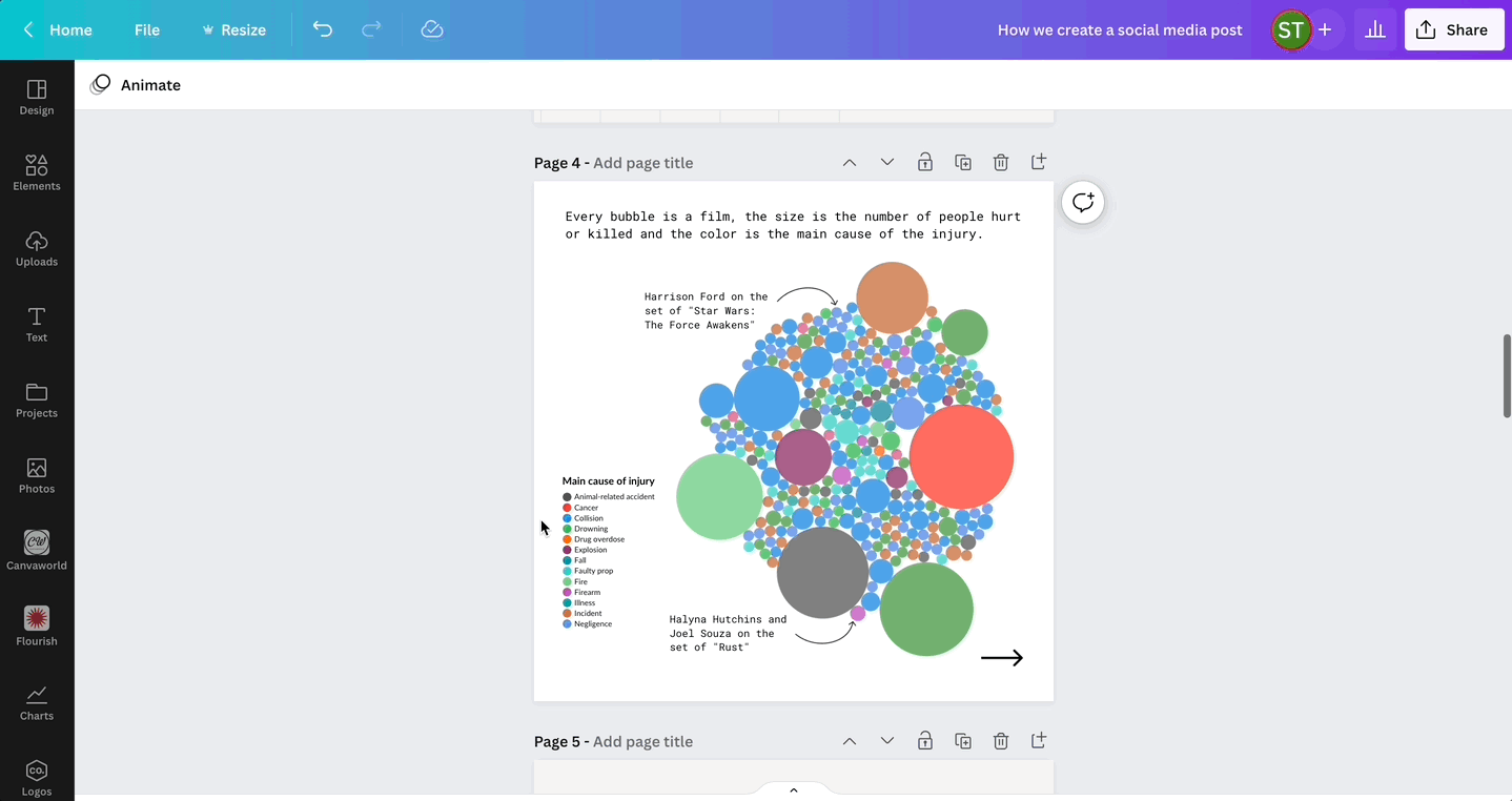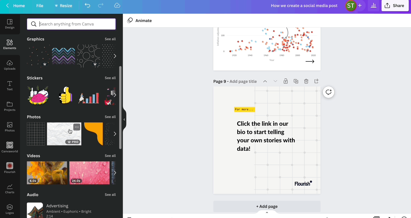 When adapting Flourish content for different mediums, you may benefit from using Canva's rich library of graphics and elements to improve your charts even further. In the example below, you can see how we used Flourish and Canva to adapt Flourish visualizations for social media.
