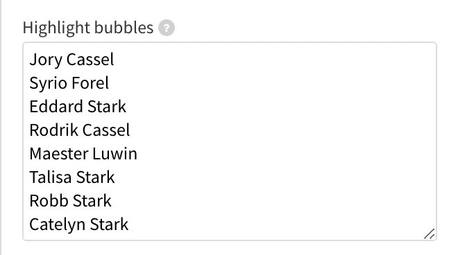 In the Highlight bubbles text box, write all the items that you want to be highlighted. These will need to match the column you've bound as your Labels.