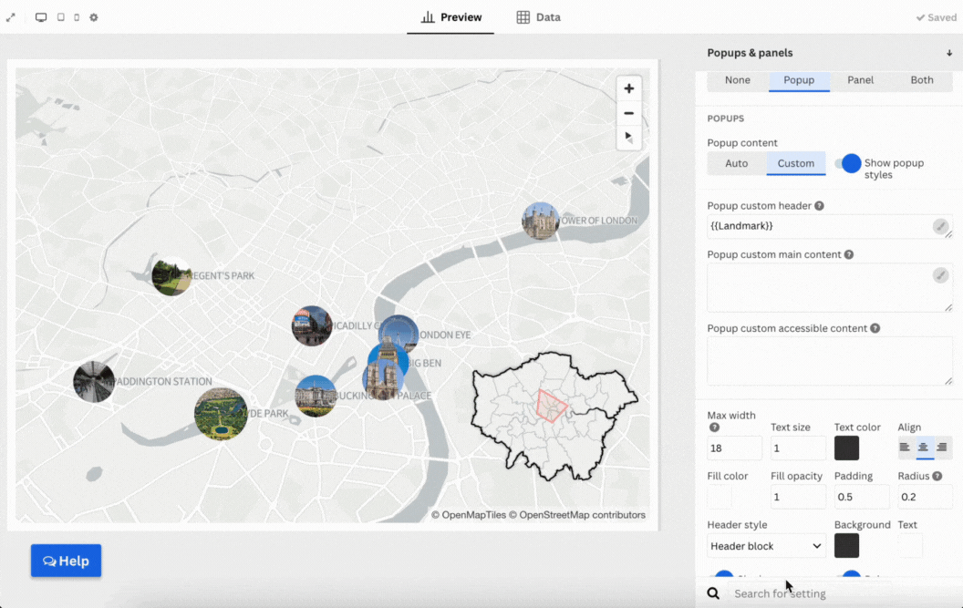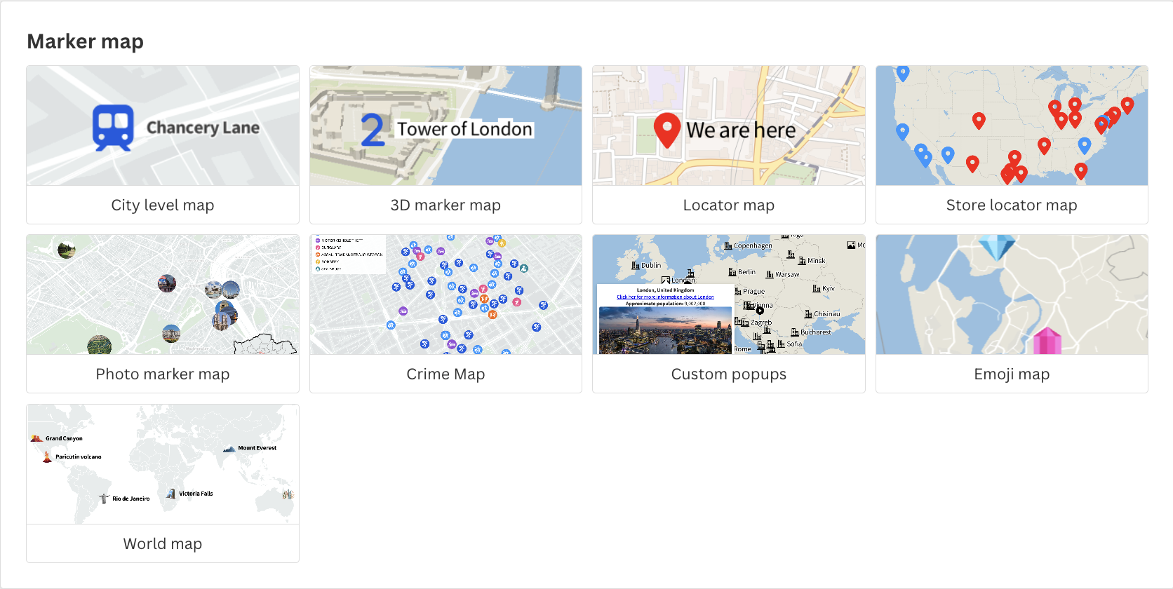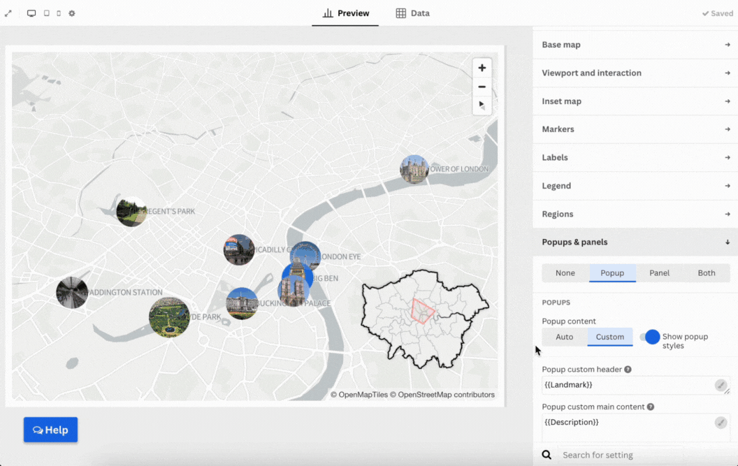 If you need to add more context to your map, upload extra columns with images, links, or descriptions. Then bind them to create popups that appear when users click a marker.