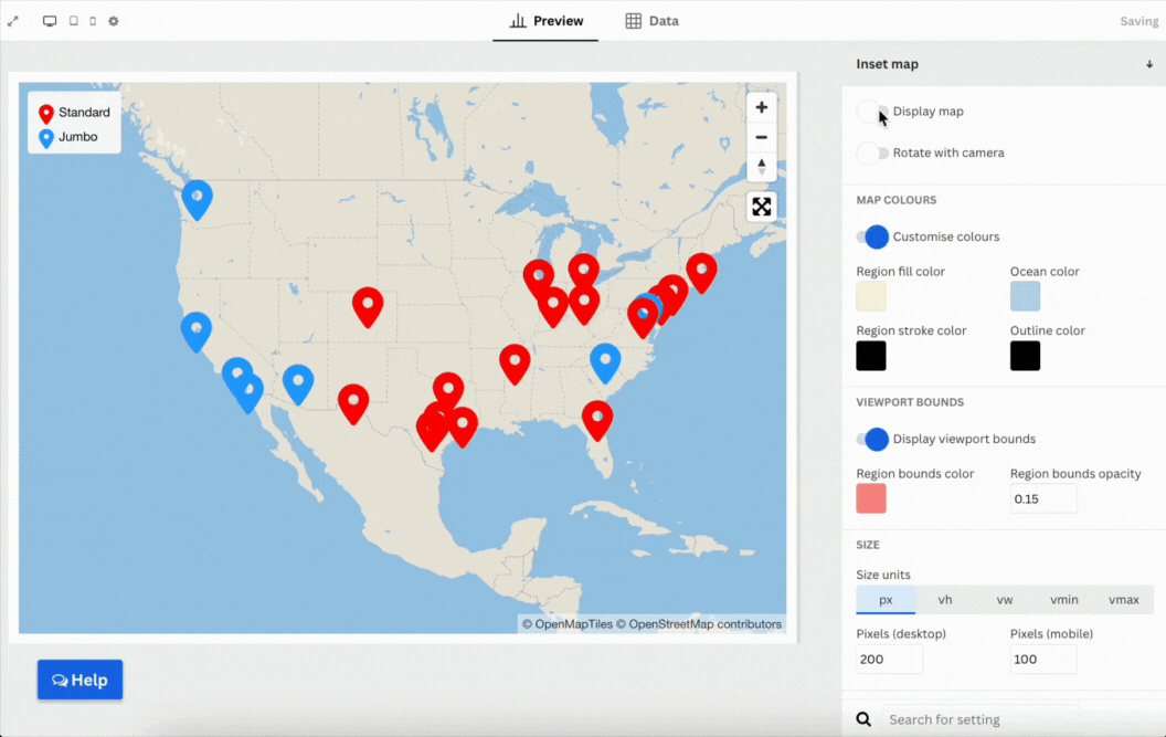 Use the Inset map settings to enable, disable, or style the inset map for extra context.