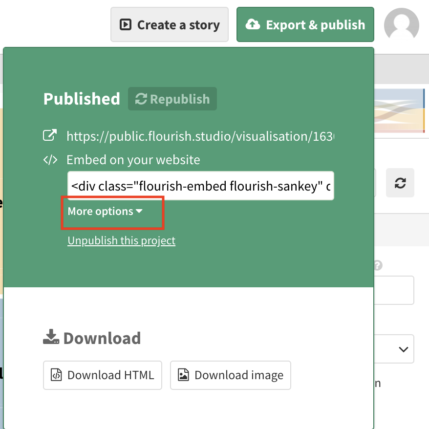 Create your visualization in Flourish and publish it using the "Export & publish" button in the top-right corner