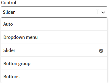 Moreover, you are able to choose between different styles of menus besides dropdown and sliders, such as button groups and buttons.