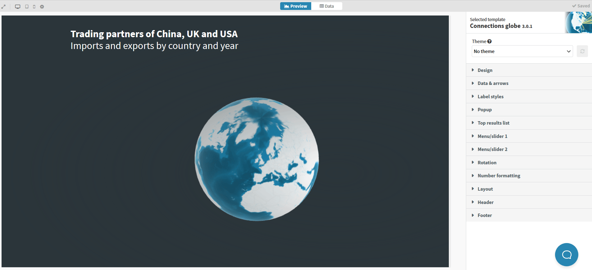 Right on cue to answer this need, the Connections globe template comes with its own way to easily let the user decide which of their data to display and filter them using menus.