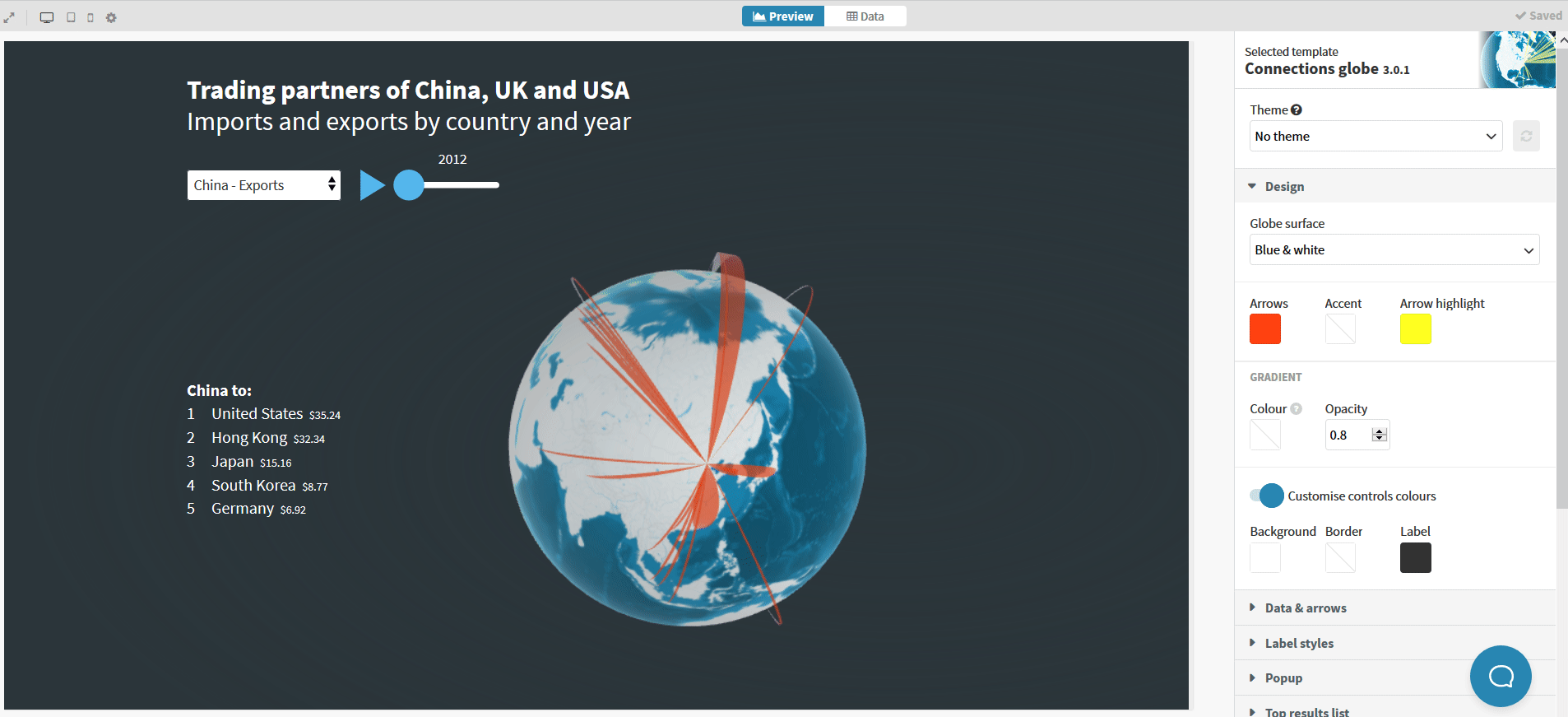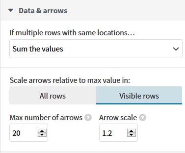 Regarding the width of the arrows, you can customise that by heading over to Data & arrows and increasing or decreasing the Arrow scale value.
