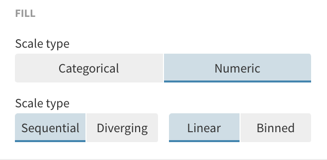 Go to the colors settings within the Regions layer settings and select Numeric to be your scale type. You can also select whether you would like your legend to be sequential or diverging.