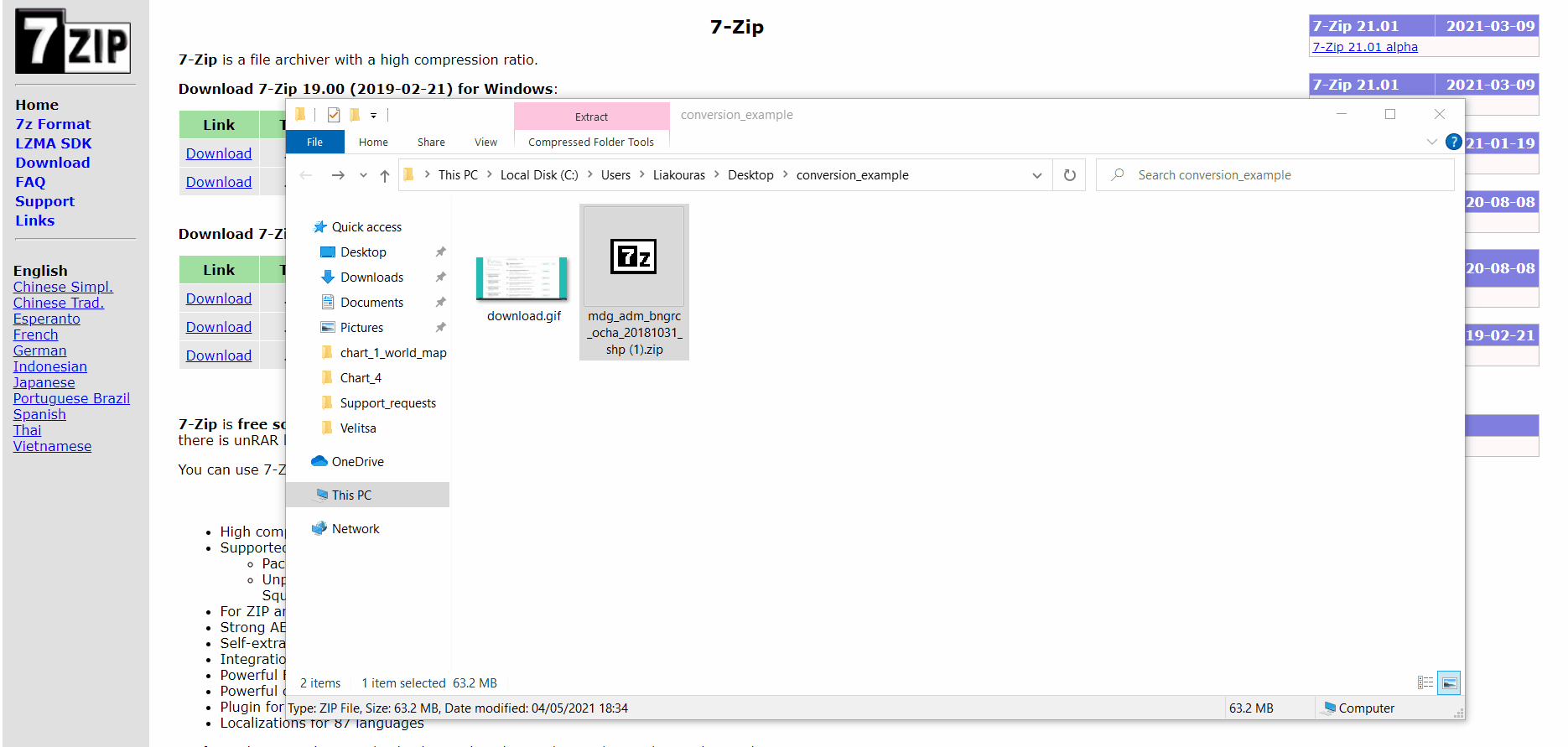 Unzip your file. If you're using a Windows machine, you can use programs such as WinRAR, 7-Zip or WinZip. In this instance, we are unzipping only the files containing adm2, since this is the district level we want to visualize.
