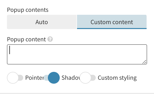To add images to a popup or panel or customize the styling, you can use the Custom content option. You will find this option in the Popups or Popups & Panels settings.